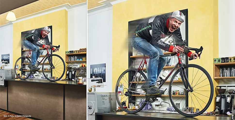 So eine Maschine verlangt hochwertigen Kaffee, den ich hier im Caffé anbiete. Ich war früher Fahrradkurier, inzwischen kümmere ich mich um das Caffé Bicicletta – mit allem, was dazu gehört – und Hajo ist der Mann für Logistik, Organisation und Controlling bei RADsFATZ, dem Radkurier in Freiburg. Es ist klar, dass Radkuriergeschäft und Cafébetrieb für uns zusammengehören."